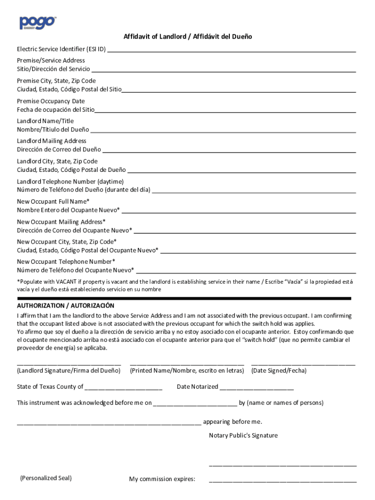 Obtener el gratis Affidavit of Landlord / Affidvit del Dueo