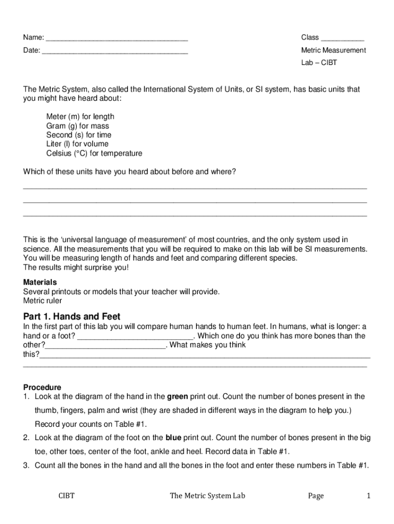 Name: ___Class ___Date: ___Metric Measurement Lab Little Metric System, also called the International System of Units, or SI system, has basic units that you might have heard about: Meter (m) for