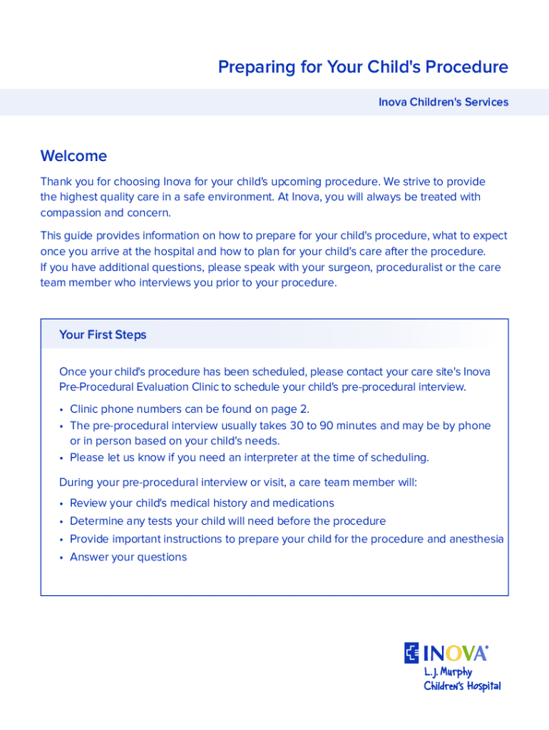 Preparing for Your Child\'s Procedure Nova Children\'s ServicesWelcome Thank you for choosing Nova for your child\'s upcoming procedure. We strive to provide the highest quality care in a safe environment.
