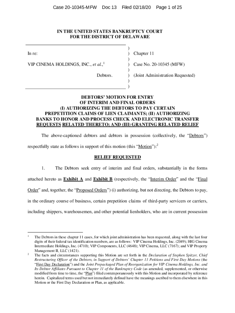 Get the free VIP - Lien Claimants Motion Filing Version