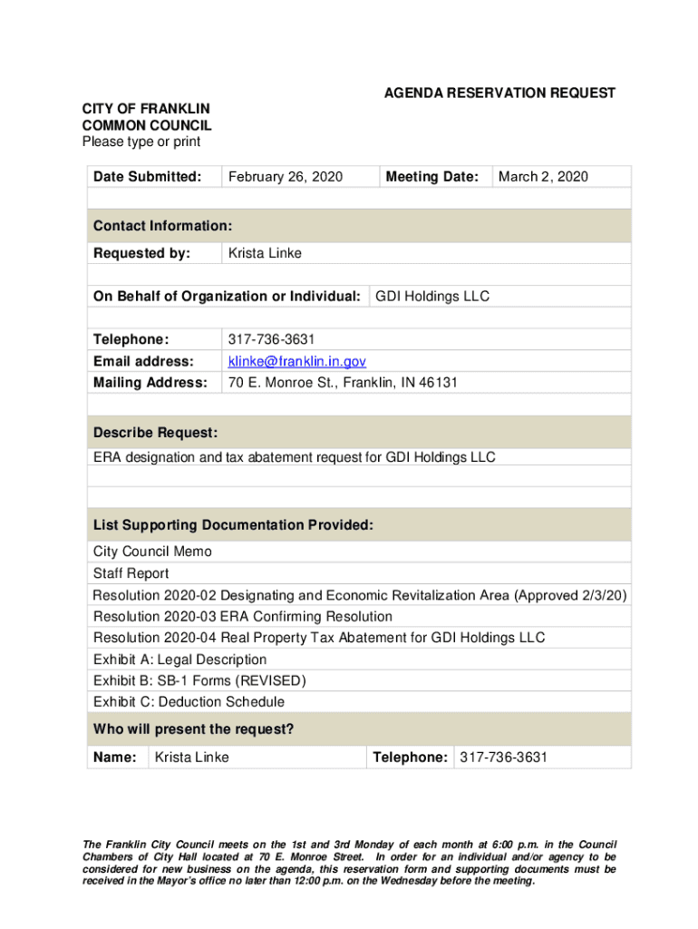 Date Submitted:February 26, 2020Meeting Date:March 2, 2020Contact Information: