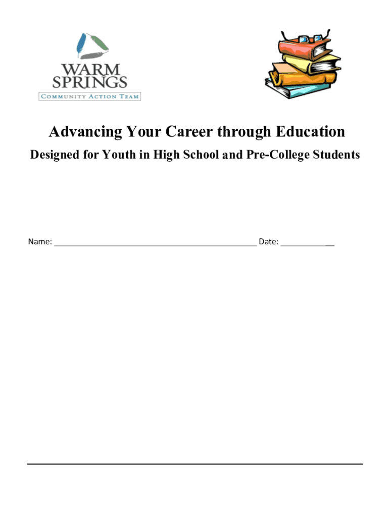 Advancing Your Career through Education Designed for Youth in High School and PreCollege StudentsName:Date:__Course of Study: Finding the Right College and Career for You Instructions for Warm Springs