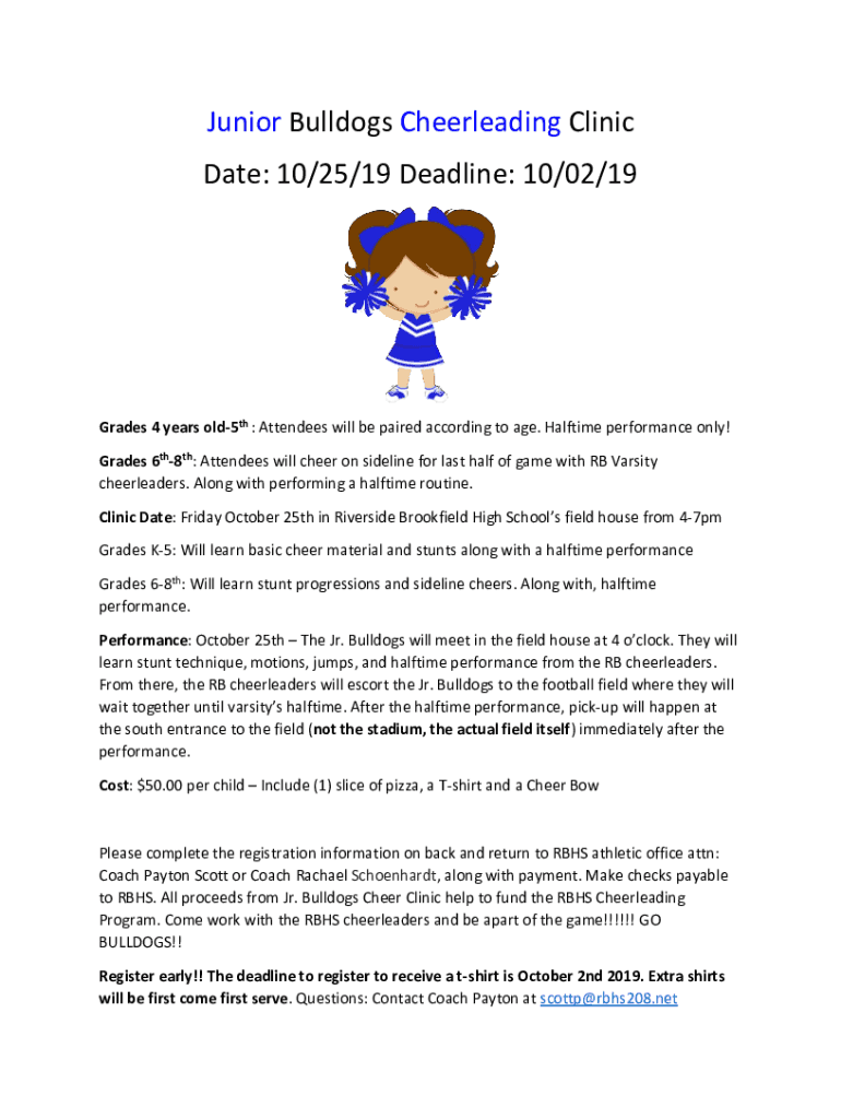 Get the free Junior Bulldogs Cheerleading Clinic Date: 10/25/19 Deadline