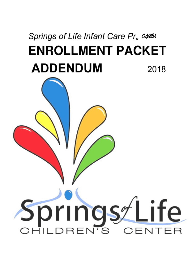 Springs of Life Infant Care PrRJUDPENROLLMENT PACKET 2018 ADDENDUMFormula Decision Form Childcare Centers Name: Springs of Life Children\'s Center Infants Name: ___ Date of Birth___Infants being fed
