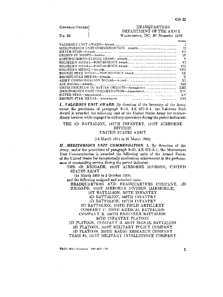 Get the free VALOROUS UNIT A WARD. By direction of the - armypubs army