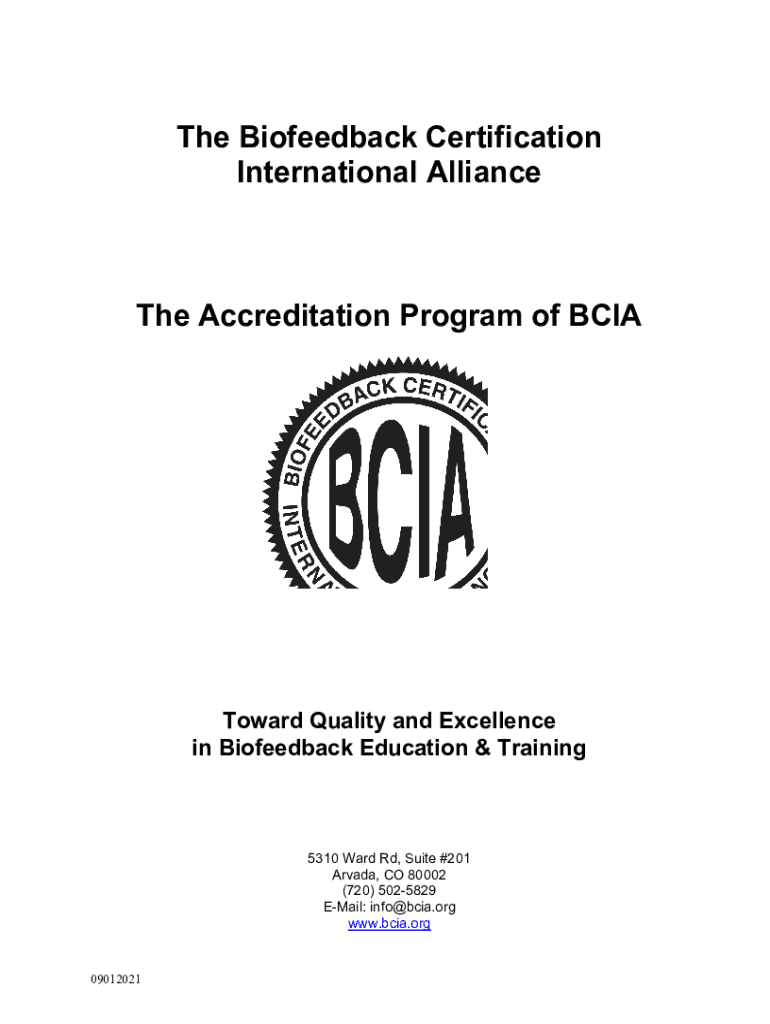 The Biofeedback Certification International Alliance Accreditation Program of BCIAToward Quality and Excellence in Biofeedback Education & Training5310 Ward Rd, Suite #201 Arvada, CO 80002 (720) 5025829