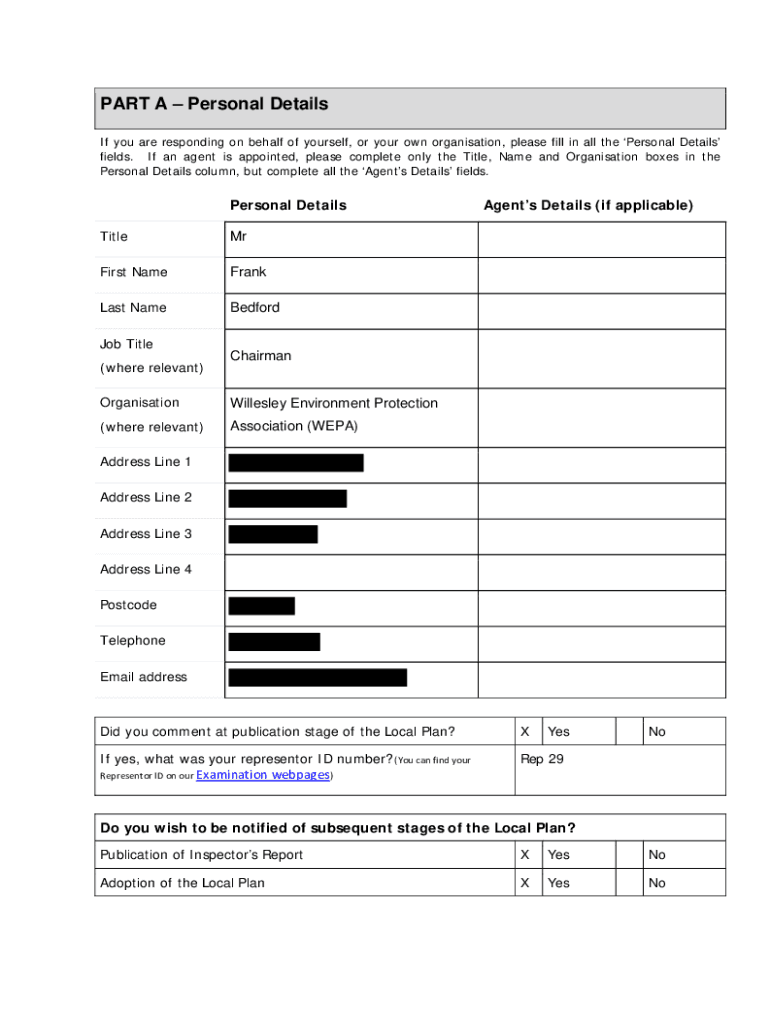PART A Personal Details If you are responding on behalf of yourself, or your own organization, please fill in all the Personal Details fields. If an agent is appointed, please complete only the Title,