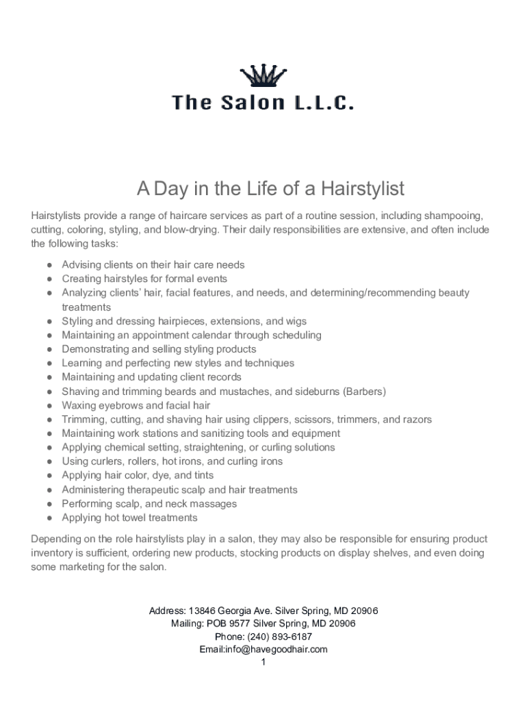 A Day in the Life of a Hairstylist Hairstylists provide a range of haircare services as part of a routine session, including shampooing, cutting, coloring, styling, and blow-drying. Their daily responsibilities
