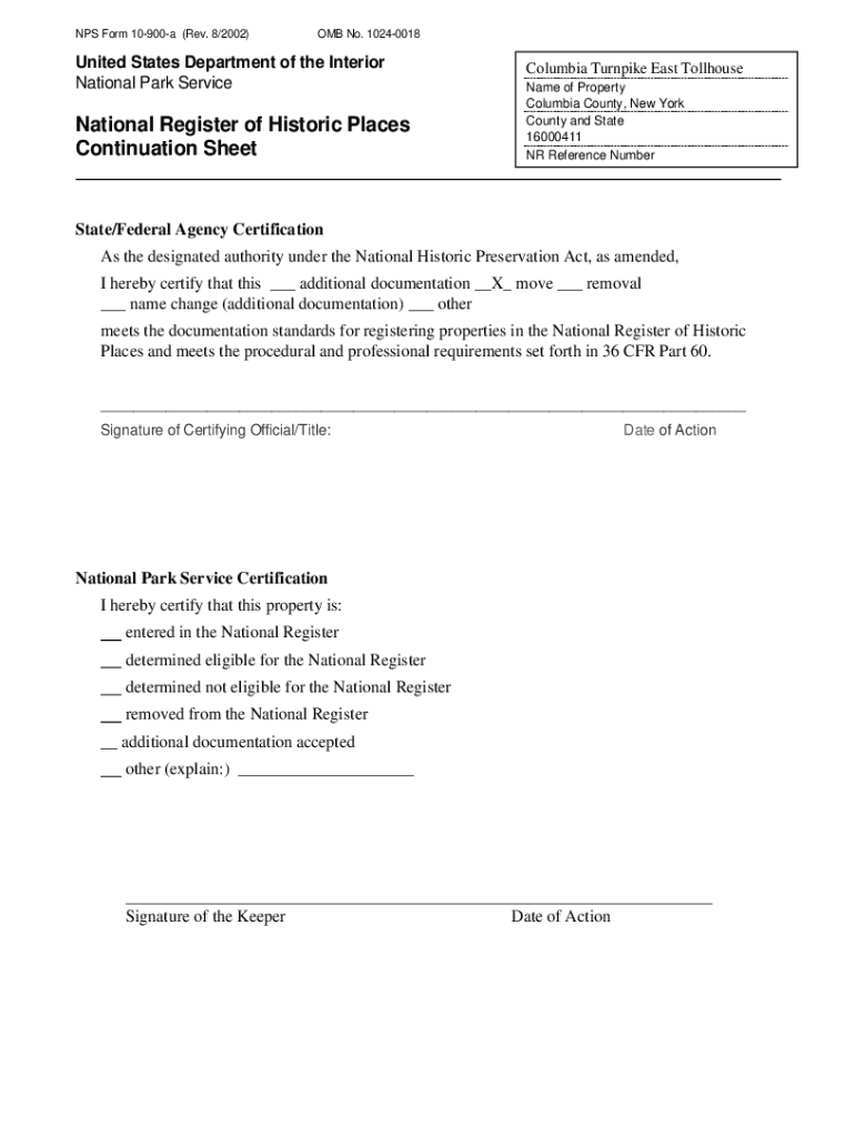 NPS Form 10900a (Rev. 8/2002)OMB No. 10240018United States Department of the Interior National Park ServiceNational Register of Historic Places Continuation Sweetheart Columbia Turnpike East Put Dollhouse