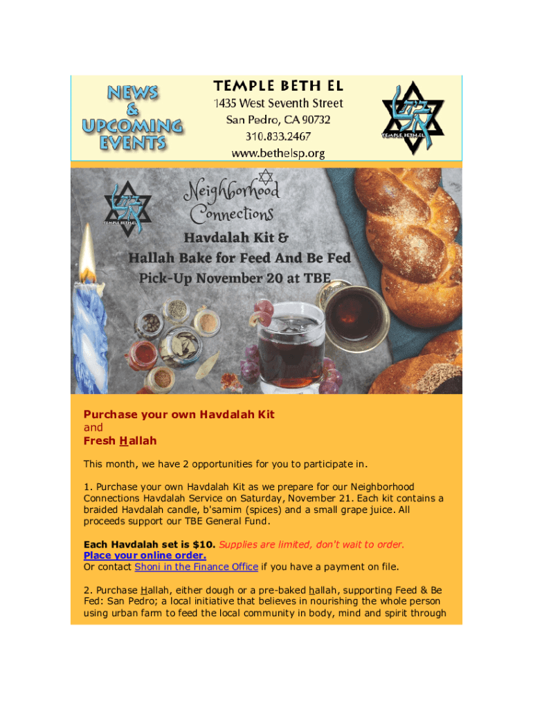 Purchase your own Havana Kit and Fresh Hallah This month, we have 2 opportunities for you to participate in. 1. Purchase your own Havana Kit as we prepare for our Neighborhood Connections Havana Service
