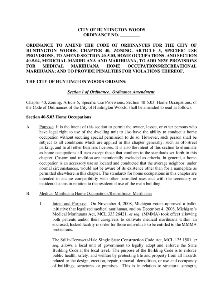 Get the free CITY OF HUNTINGTON WOODS ORDINANCE NO.