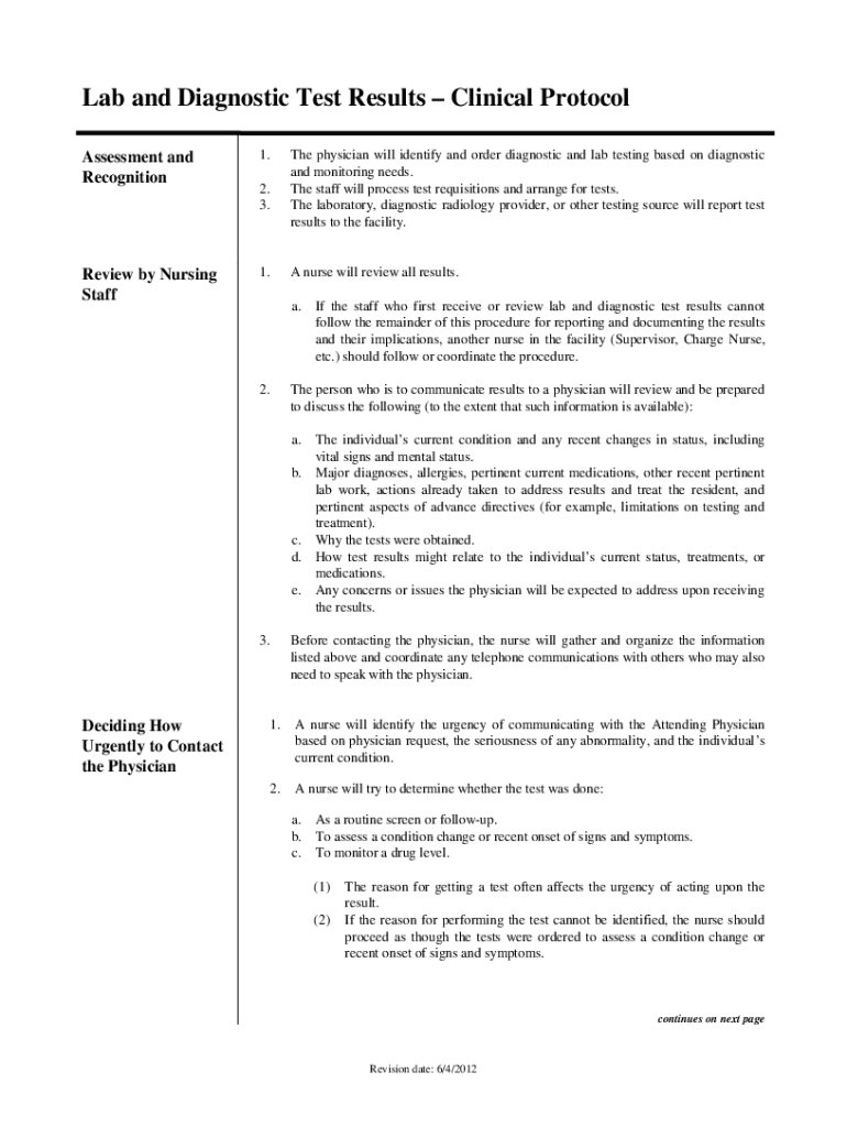 Staff1. The physician will identify and order diagnostic and lab testing based on diagnostic