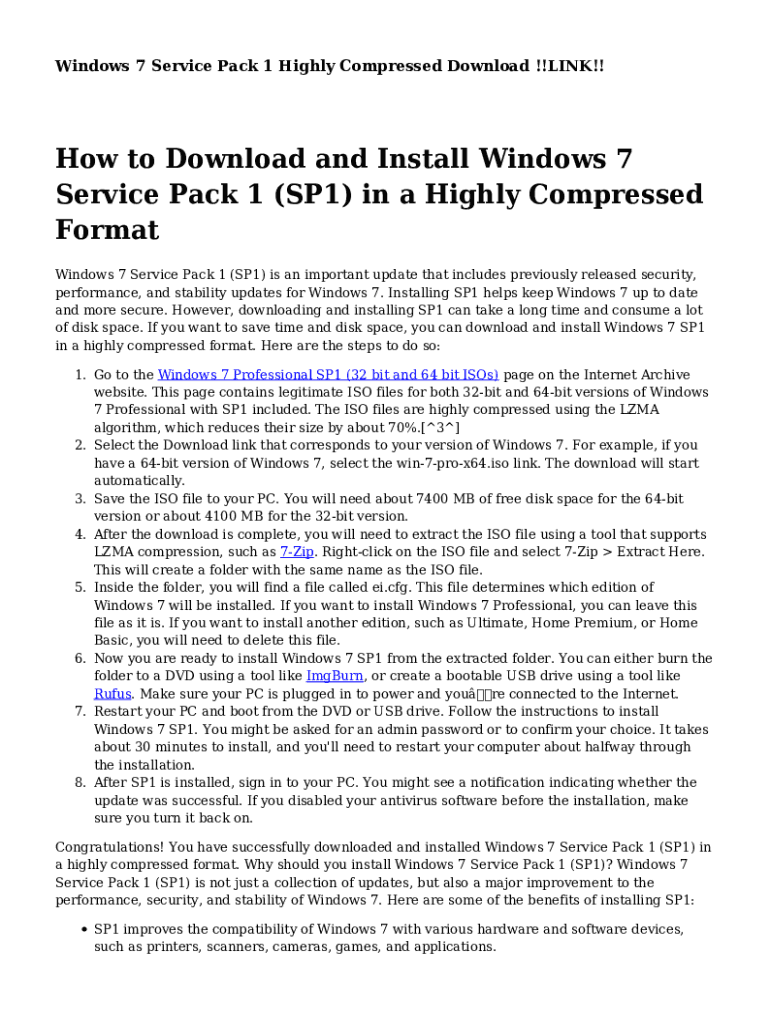 Windows 7 Service Pack 1 Highly Compressed Download !!LINK!! How to Download and Install Windows 7 Service Pack 1 (SP1) in a Highly Compressed Format Windows 7 Service Pack 1 (SP1) is an important