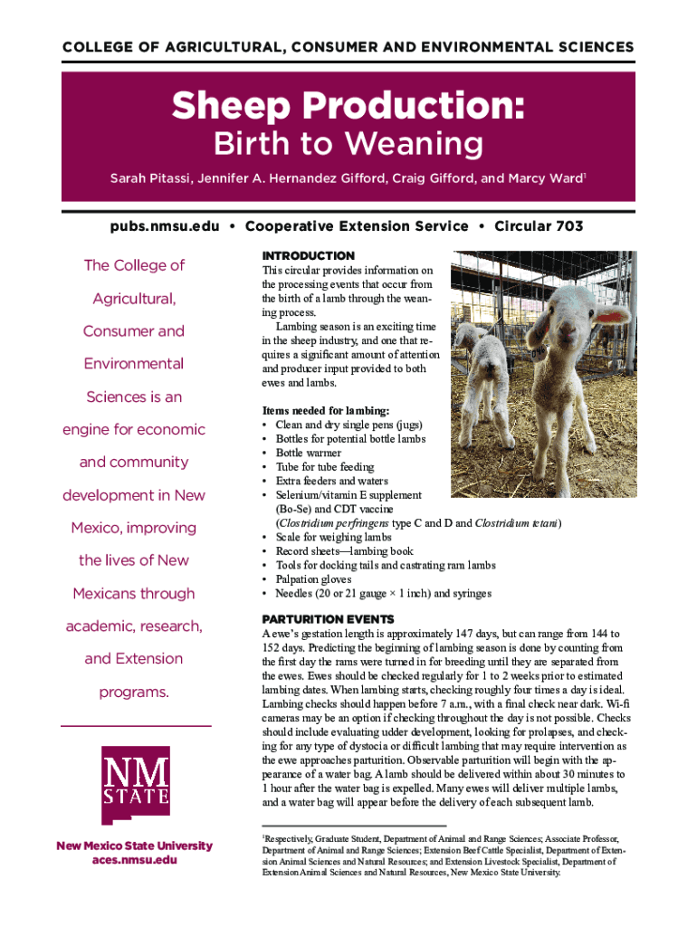 COLLEGE OF AGRICULTURAL, CONSUMER AND ENVIRONMENTAL SCIENCESSheep Production: Birth to Weaning Sarah Picasso, Jennifer A. Hernandez Gifford, Craig Gifford, and Marcy Ward1pubs.MSU.edu Cooperative