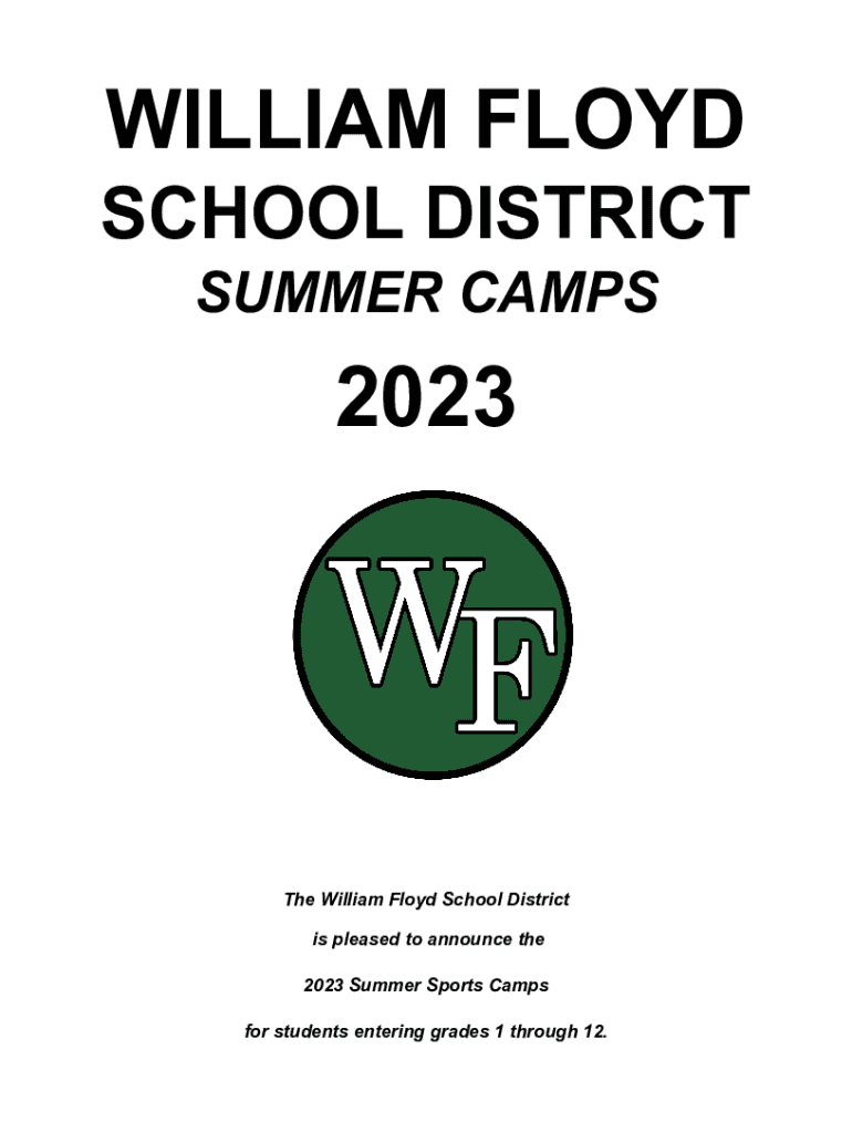 WILLIAM FLOYD SCHOOL DISTRICT SUMMER CAMPS2023The William Floyd School District is pleased to announce the 2023 Summer Sports Camps for students entering grades 1 through 12.WILLIAM FLOYD SUMMER CAMPS