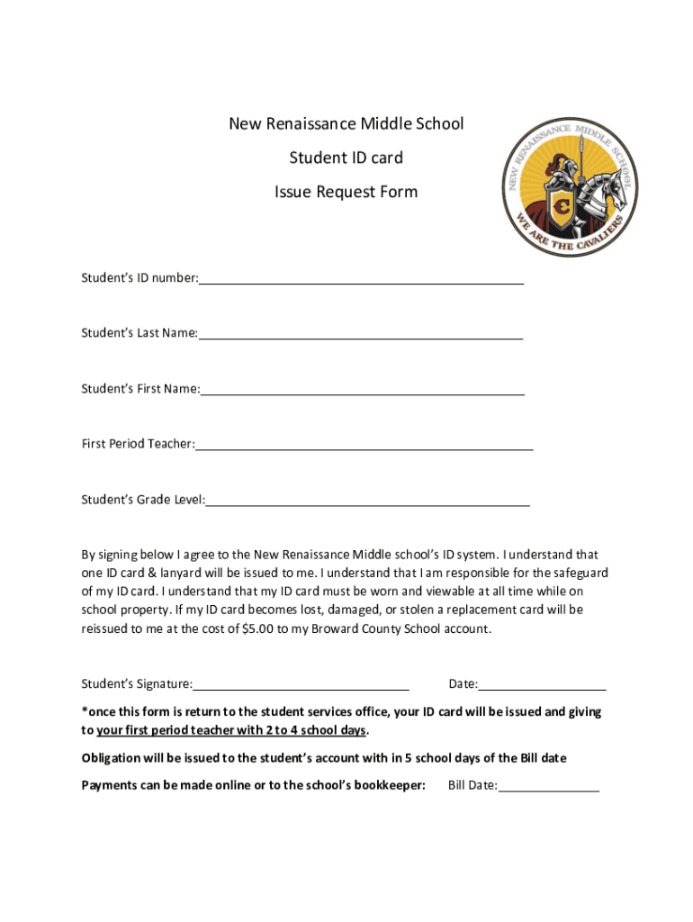 Get the free New Renaissance Middle School Student ID card Issue ...