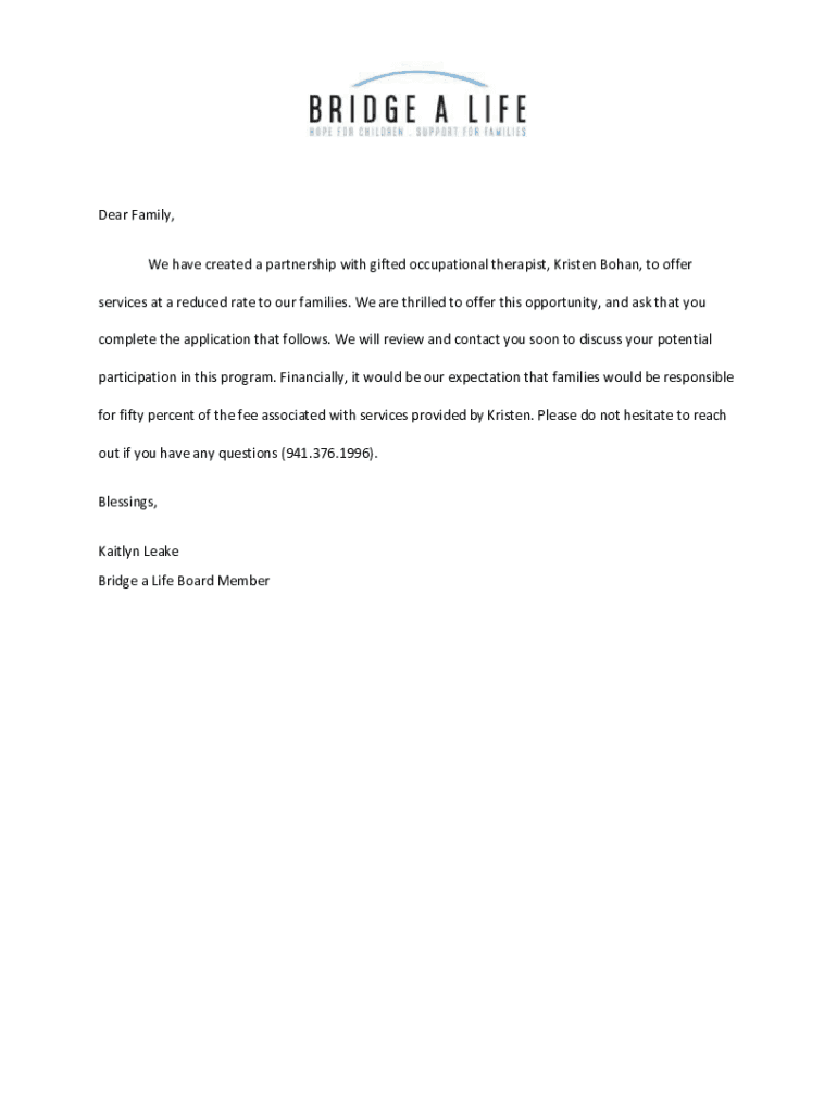 Dear Family, We have created a partnership with gifted occupational therapist, Kristen Behan, to offer services at a reduced rate to our families. We are thrilled to offer this opportunity, and ask