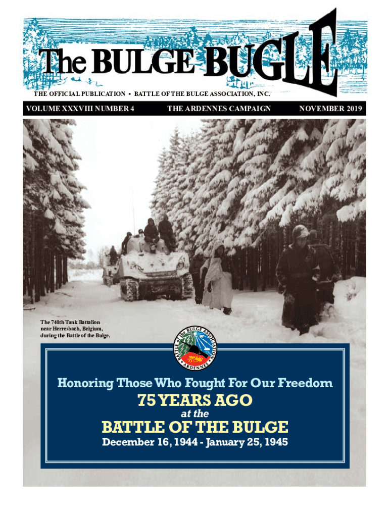 THE OFFICIAL PUBLICATION BATTLE OF THE BULGE ASSOCIATION, INC.VOLUME XXXVIII NUMBER 4THE ARDENNES CAMPAIGNNOVEMBER 2019The 740th Tank Battalion near Herresbach, Belgium, during the Battle of the Bulge.
