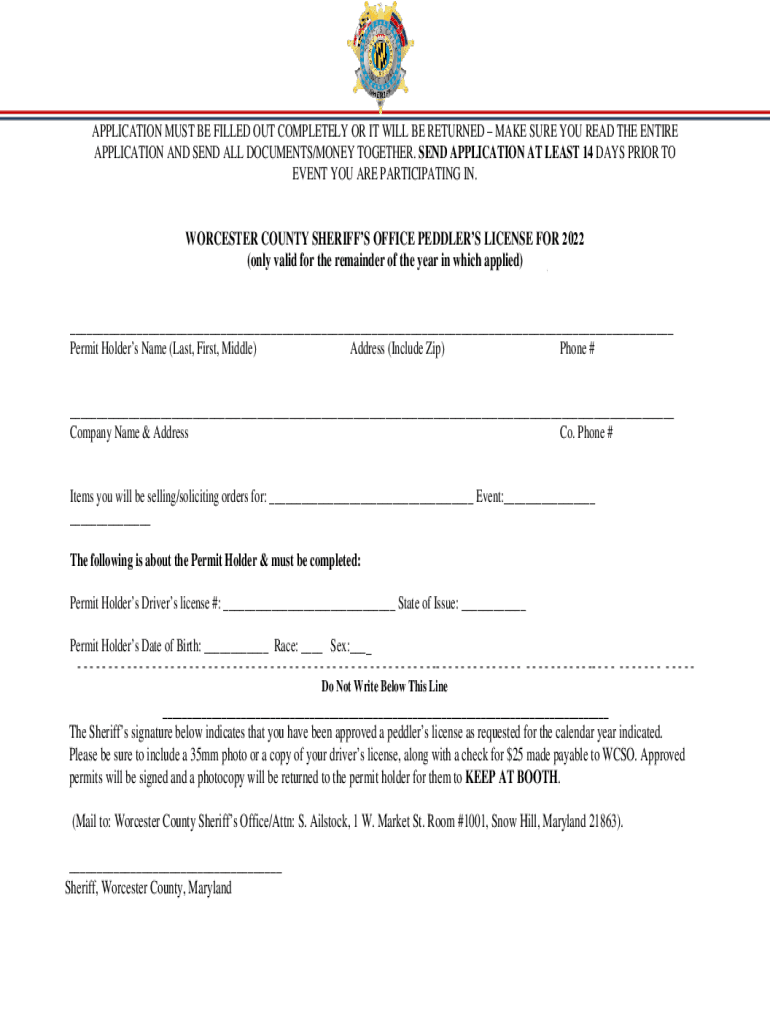 APPLICATION MUST BE FILLED OUT COMPLETELY OR IT WILL BE RETURNED MAKE SURE YOU READ THE ENTIRE APPLICATION AND SEND ALL DOCUMENTS/MONEY TOGETHER. SEND APPLICATION AT LEAST 14 DAYS PRIOR TO EVENT YOU