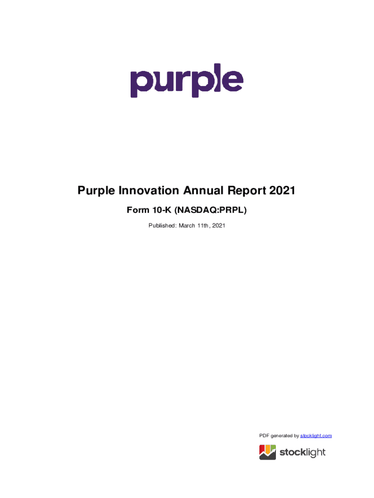 Get the free Purple Innovation, Inc. (PRPL) SEC Filing 10-K Annual ...