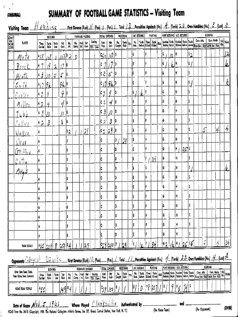 SUMMARY OF FOOTBALL GAME STATISTICS Visiting Team