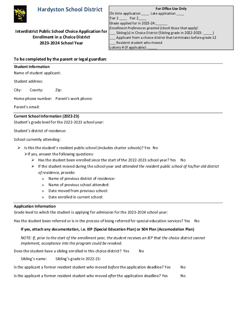Harrison School DistrictInterdistrict Public School Choice Application for Enrollment in a Choice District 20232024 School Hereford Office Use Only On time application ___ Late application ___ Tier