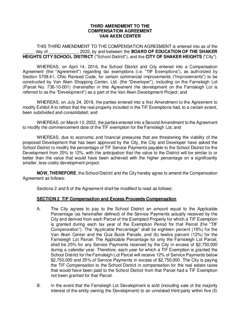 THIRD AMENDMENT TO THE COMPENSATION AGREEMENT VAN TAKEN CENTER THIS THIRD AMENDMENT TO THE COMPENSATION AGREEMENT is entered into as of the ___ day of ___, 2022, by and between the BOARD OF EDUCATION