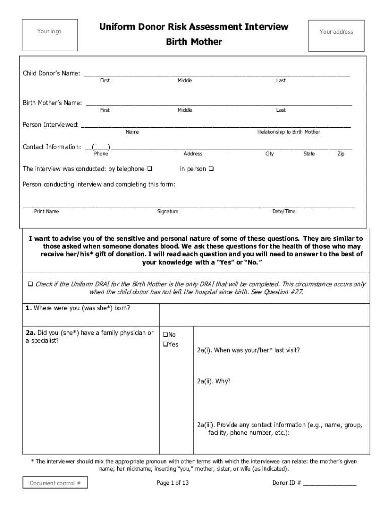Get the free What is the Donor Risk Assessment Interview (or DRAI)?