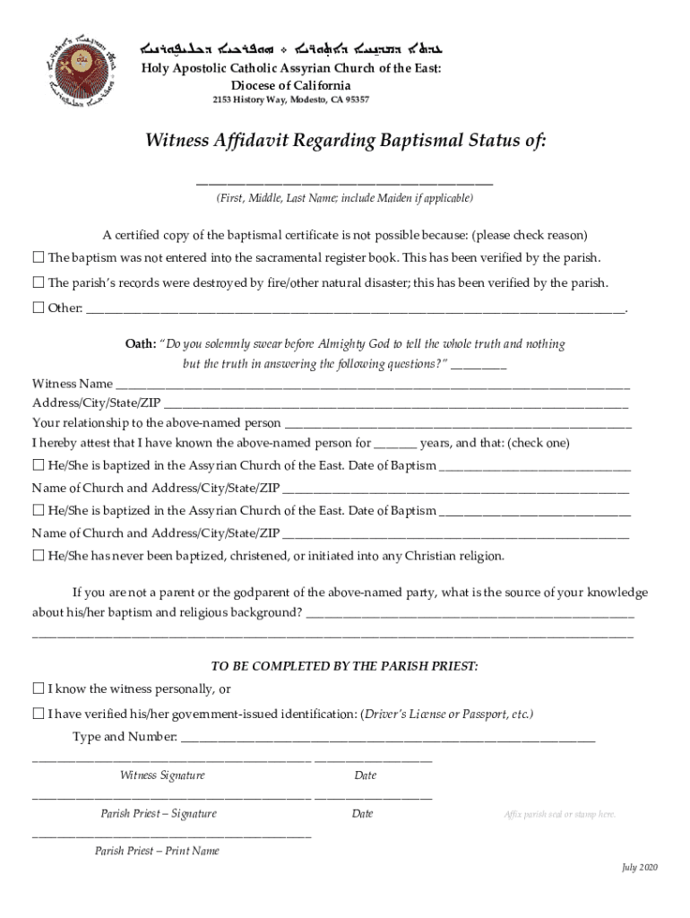 WitnessAffidavitRegardingBaptismalStatusof: