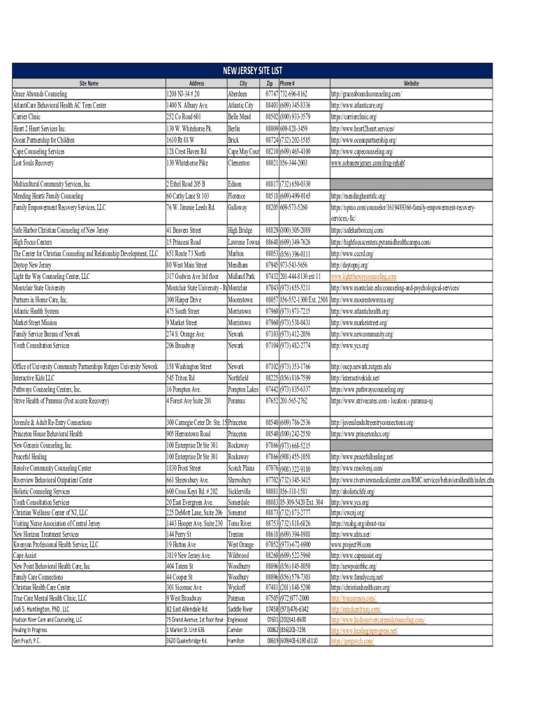Fill out your new jersey site list online with pdfFiller!