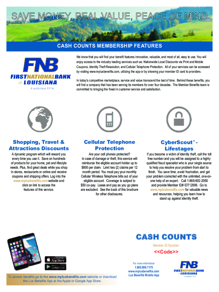 SAVE MONEY, REAL VALUE, PEACE OF MIND CASH COUNTS MEMBERSHIP Features know that you will find your benefit features innovative, valuable, and most of all, easy to use. You will enjoy access to the