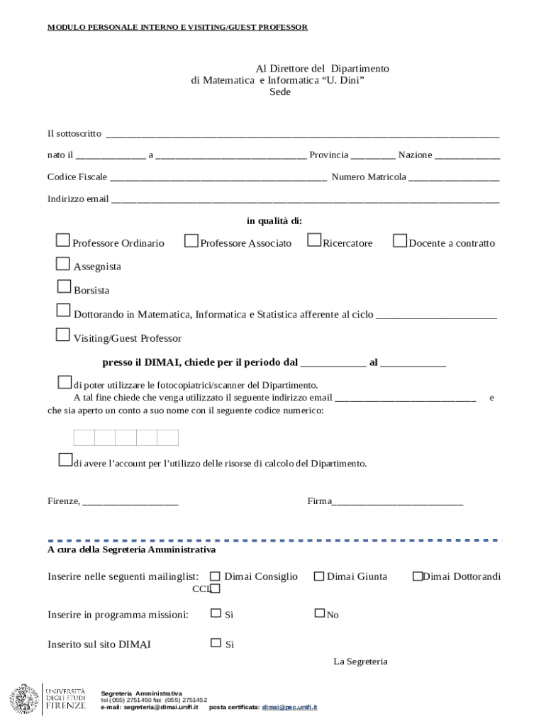 MODULO PERSONAL INTERN E VISITING/GUEST Professorial Director Del Divertimento