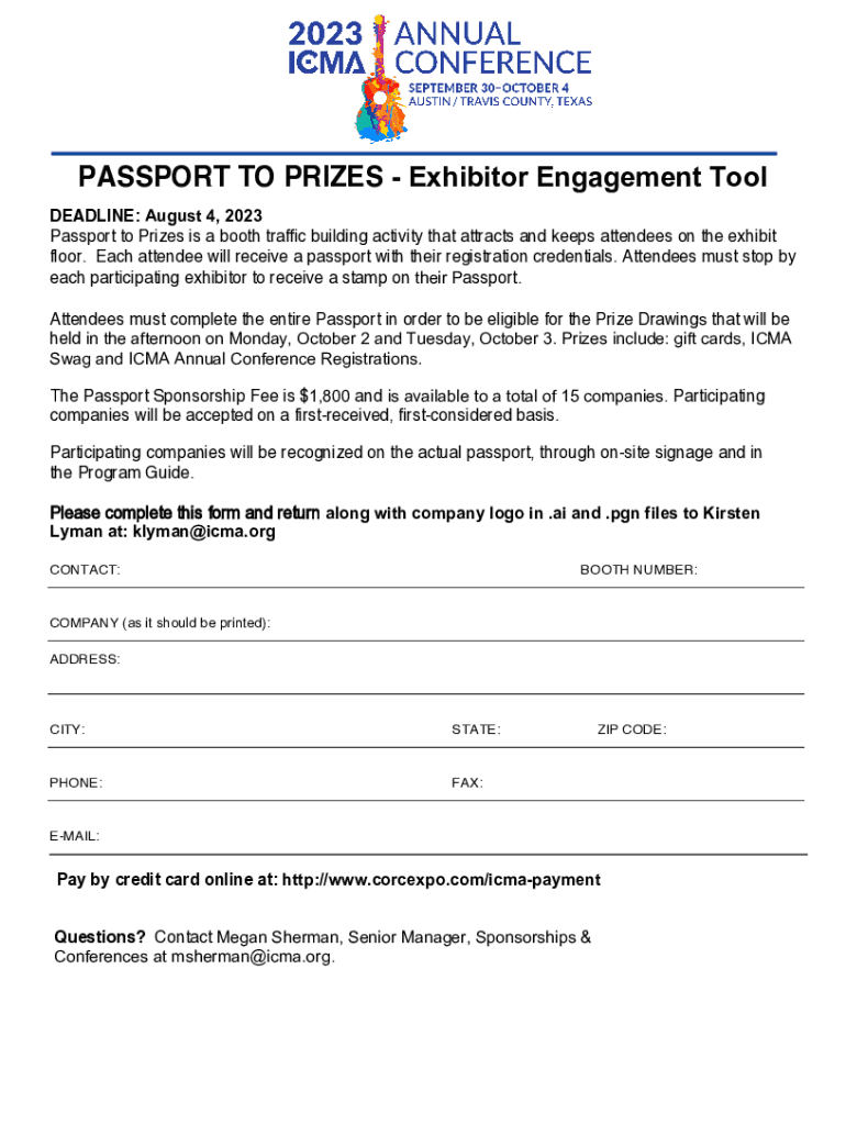 PASSPORT TO PRIZES Exhibitor Engagement Tool DEADLINE: August 4, 2023, Passport to Prizes is a booth traffic building activity that attracts and keeps attendees on the exhibit floor. Each attendee
