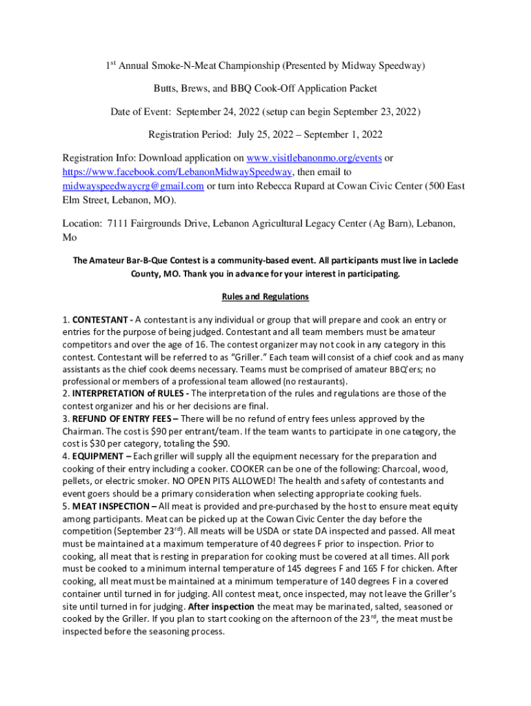 Butts, Brews, and BBQ Cookout Application Packet