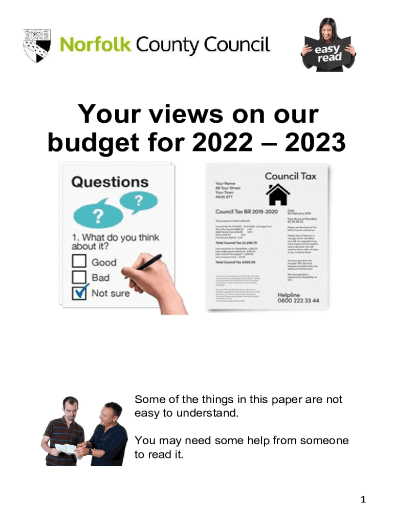 Your views on our budget for 2022 2023Some of the things in this paper are not easy to understand. You may need some help from someone to read it.11We want Norfolk to be a county where everyone thrives