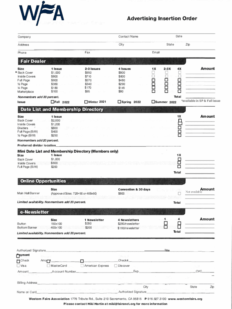 Advertising Insertion OrderCompanyContact NameAddressCityDateEmailFaxPhoneZipStateFair Dealer