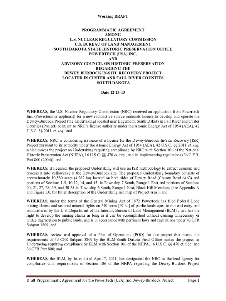 Get the free Draft Programmatic Agreement A Dewey-Burdock Project.