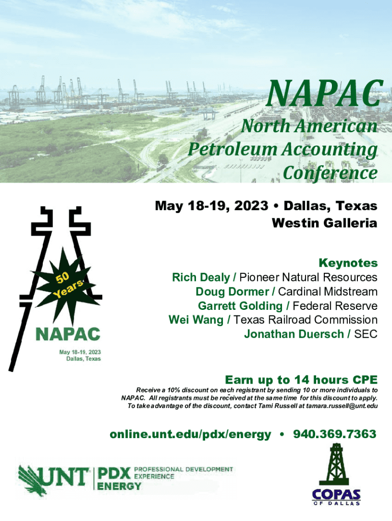 NAPA North American Petroleum Accounting Conference May 1819, 2023 Dallas, Texas Weston Galleria Keynotes Rich Deal / Pioneer Natural Resources Doug Dormer / Cardinal Midstream Garrett Golding / Federal