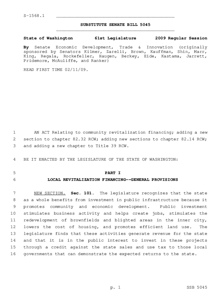 S1568.1___ SUBSTITUTE SENATE BILL 5045 ___State of Washington61st Legislature2009 Regular Session Senate Economic Development, Trade & Innovation (originally sponsored by Senators Killer, Carell,