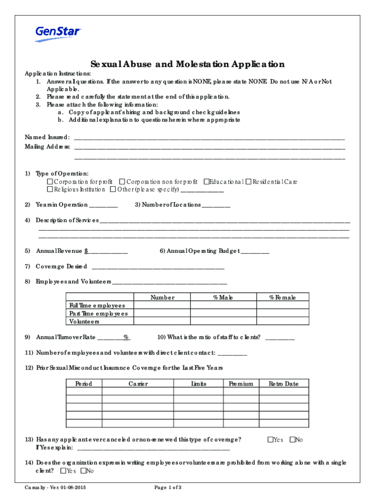 Sexual Abuse and Molestation ApplicationApplication Instructions: