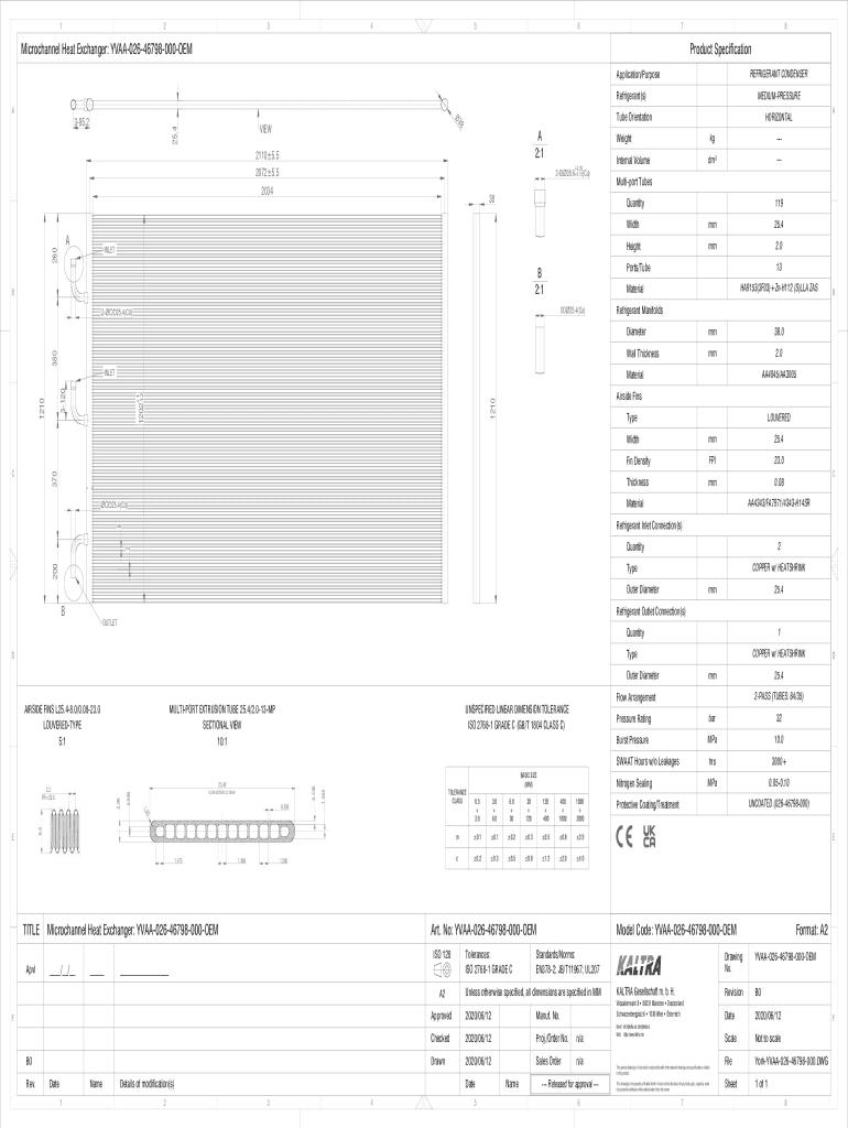 1234567Microchannel Heat Exchanger: YVAA02646798000OEM8Product Specification