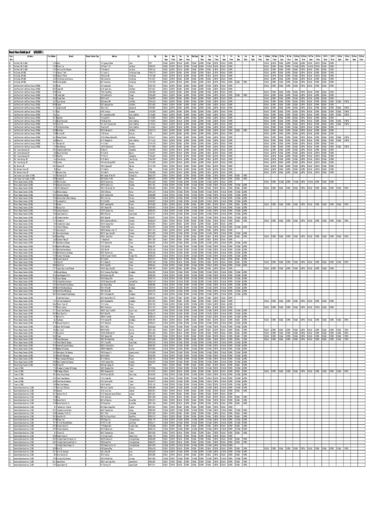 Branch Hours Details (as of State ABR AR AR AR AR AR AR AR AZ AZ AZ AZ AZ AZ AZ AZ AZ AZ CA CA CA CA CA6/30/2020)AA Name Fort Smith, ROK MSA Fort Smith, ROK MSA Fort Smith, ROK