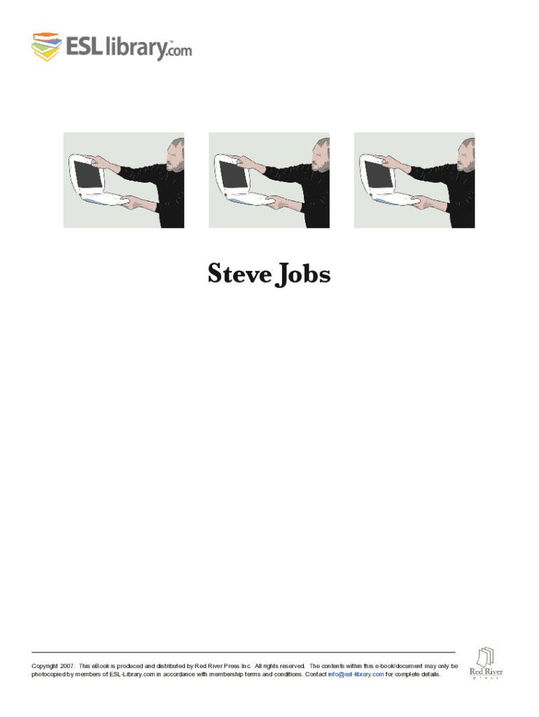 Steve JobsCopyright 2007. This e-book is produced and distributed by Red River Press Inc. All rights reserved. The contents within this e-book/document may only be photocopied by members of ESLLibrary.com