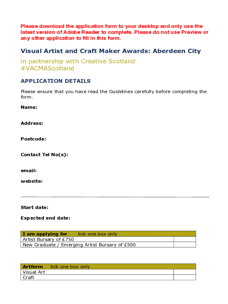 Aberdeen City Council and Creative ScotlandPlease download the application