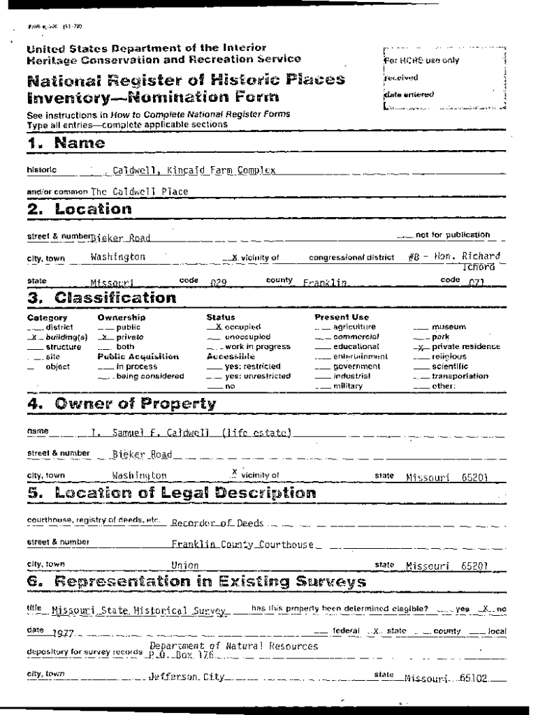 To fill out the National Register of Historic Places nomination form, you need to provide information about the property's history, significance, and physical characteristics.