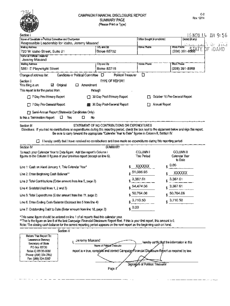 Rev. 12/14CAMPAIGN FINANCIAL DISCLOSURE REPORT