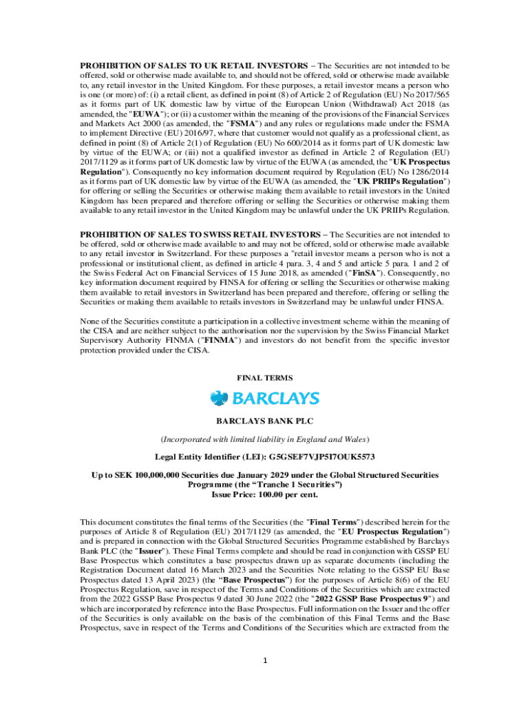 Get the free Up to SEK 100,000,000 Securities due January 2029 under the Global Structured Securi...