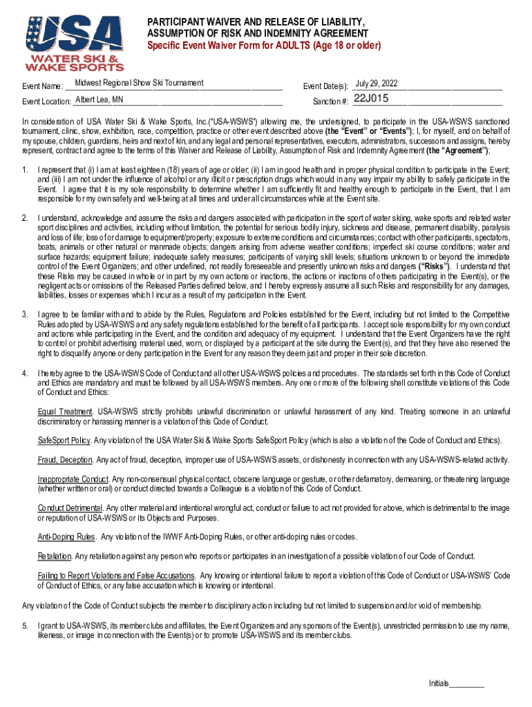 Specific Event Waiver Form for ADULTS (Age 18 or older)