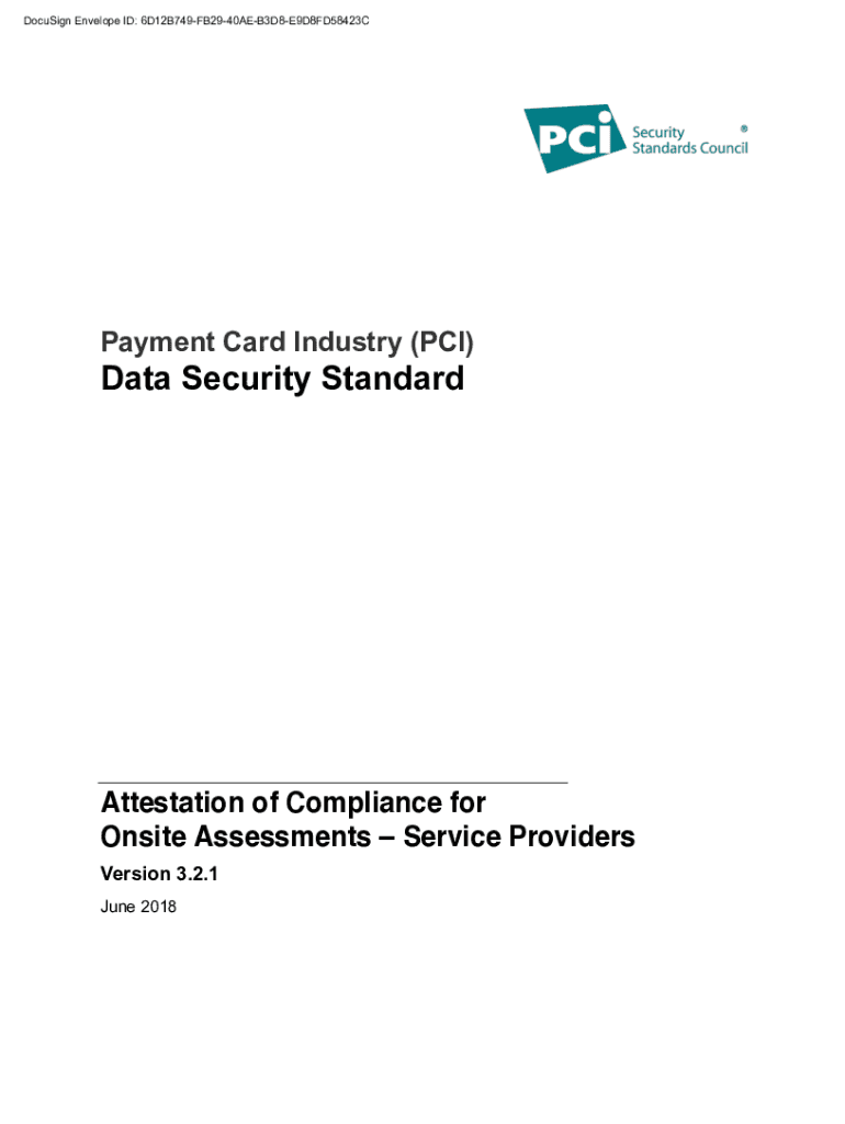 DocuSign Envelope ID: 6D12B749FB2940AEB3D8E9D8FD58423C 5266FD0306B84223B0BC397D81446D93Payment Card Industry (PCI)Data Security StandardAttestation of Compliance for Onsite Assessments Service Providers