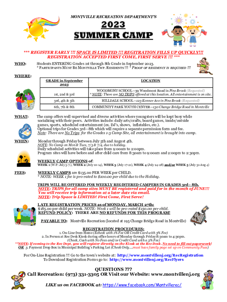 SUMMER CAMP*** REGISTER EARLY !!! SPACE IS LIMITED !!! REGISTRATION FILLS UP QUICKLY!!!